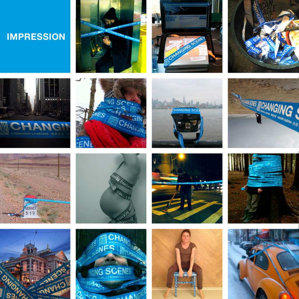 Er bestaat een kilometers lang blauw lint met daarop de woorden Changing Scenes. Wat als je het aanpakt, uitrolt, je verbeelding volgt en de wereld voor je ogen ziet veranderen.”