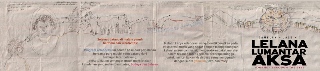 Lelana Lumantar Aksa presents a unique experience for the audience, presenting harmony between modern and traditional music through a fresh and innovative experimental approach. By combining the strengths of all the musicians, putting their talents under intense pressure for several weeks to tell a new, evocative story with the sounds of gamelan, jazz, and foley. In the story, they travel through a mirror across time and space, from the Netherlands, to Sumatra and Java. On their journey, they encounter tigers, volcanoes, and wild jungle oceans.