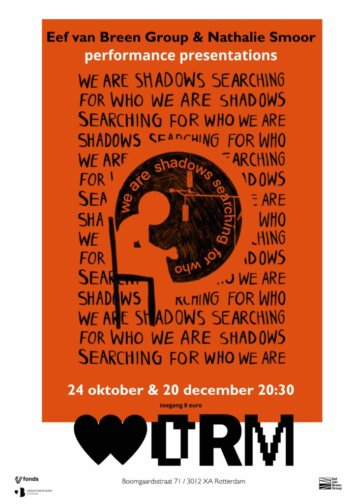 We are Shadows Searching is een onderzoek trilogie die in de komende maanden wordt gepresenteerd; een initiatief van componist Eef van Breen en mimespeler Nathalie Smoor. Dit jaar begonnen zij aan een eerste samenwerking tijdens “Nyaj Stories”; een initiatief van het Europees-Indonesische Bersama Collective.