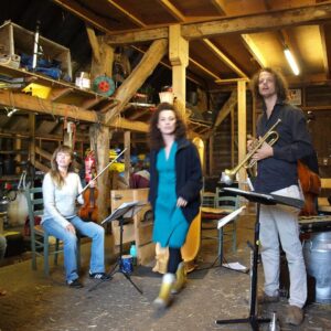 Toen wij in november 2019 in het geweldige Krommenie kwamen wonen waren wij van plan om in de daarop volgende lente onze komst met een concert voor de buurt te vieren! Maar.. toen brak natuurlijk Corona uit en kwam alles op de lange baan. Intussen leerden we steeds meer leuke mensen in het dorp, Krommenie voelt inmiddels als een grote gezellig huiskamer! Daar zíj́n we dan DRIE LENTES LATER met het eerste concert in onze muziekstudio!