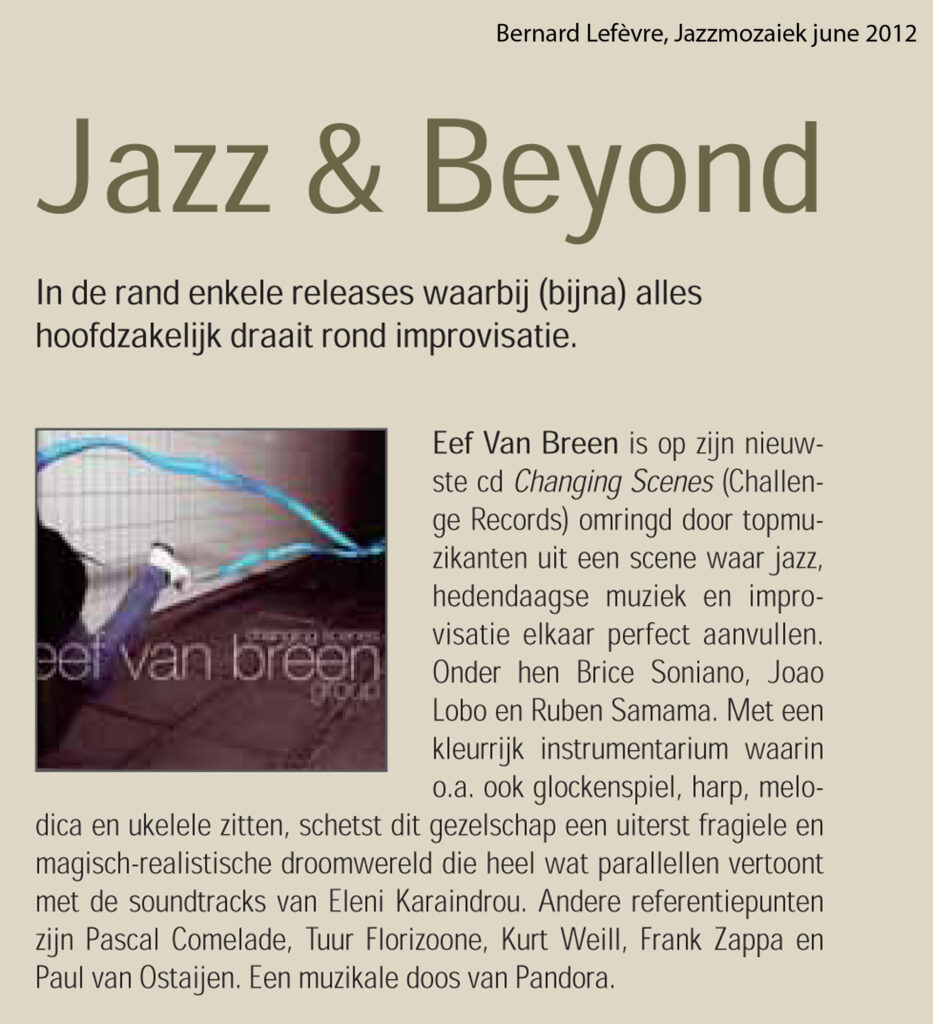 “Changing Scenes cd in Lesoir May 2012 by Jean-Claud Vantroyen
