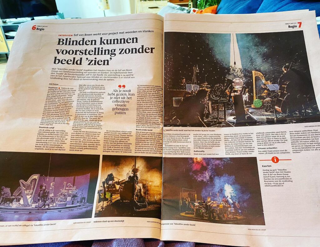 “Maar dan is daar gelukkig de multigetalenteerde band van componist-musicus Eef van Breen. (..)De muziek verleent de voorstelling een filmachtige sfeer, met vooral invloeden van jazz en Balkanmuziek (maar deze snelle typering doet de muziek zwaar tekort).” (..) “componist-muzikant Eef van Breen, een grote meerwaarde voor de productie.” THEATERKRANT